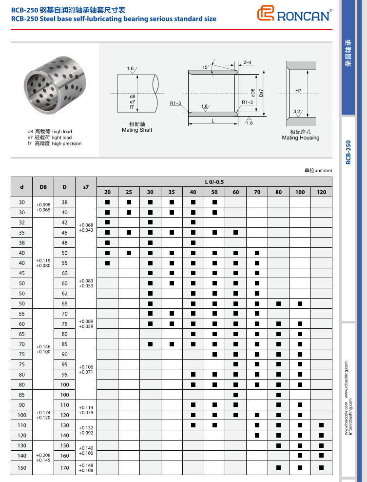 RCB250則在 RCB200的基礎上進行了改良,以固體潤滑劑嵌入替代了原有的披覆方式,使得產品在使用過程中提供了源源不斷的潤滑源,從而達到免維護的目的。